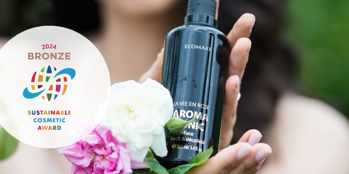 По-рано тази година ECOMAAT получи и бронзово отличие от Sustainable Cosmetic Awards в Токио за своя La Vie en Rose Aroma Tonic – органичен тоник с Rosa Damascena и Rosa Alba, дестилиран специално за тази формула и създаден чрез нулевоотпадъчна технология.