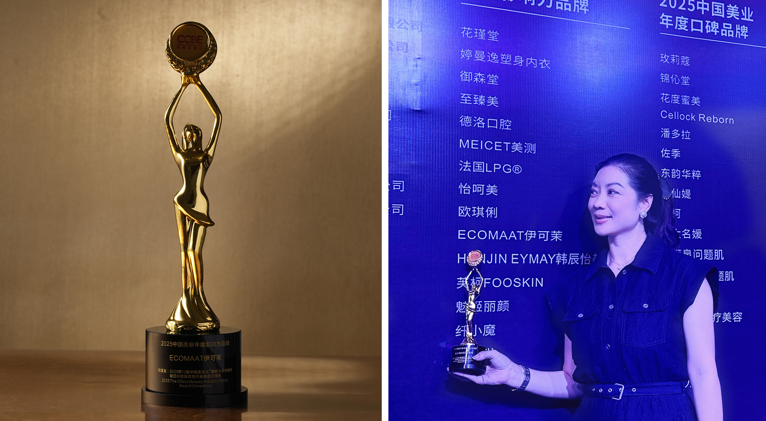С радост споделяме, че ECOMAAT спечели наградата „Най-влиятелна козметична марка за 2025 г.“ на престижните China Beauty Industry Oscar Awards – едно от най-авторитетните събития в козметичната индустрия в Азия.