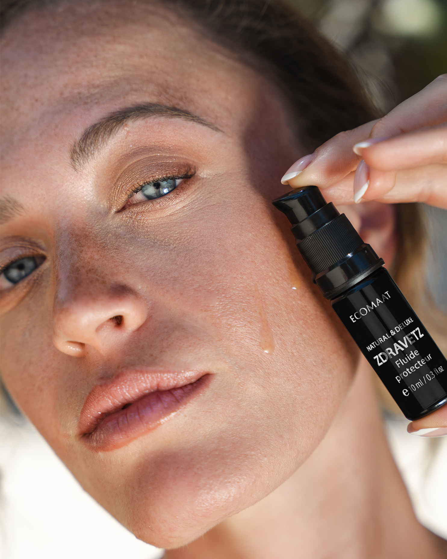 За най-добър ефект – използвайте Флуид Здравец целогодишно, сутрин и вечер за кожата на лицето, шията, деколтето и околоочен контур.